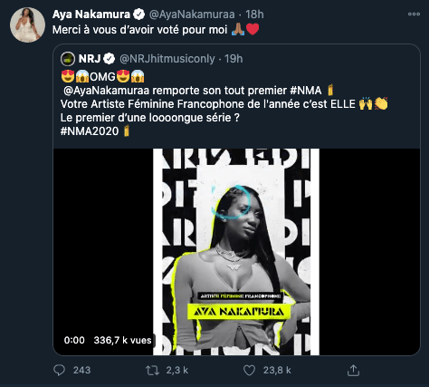 Artista Femenina Francófona del año: AYA NAKAMURA